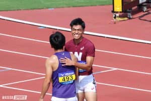 疲労がある中でやりたい動きはできました。ですが、1位と同時に目標として大前祐介監督(平17人卒=東京・本郷) の20秒29(早大記録)を目指していたので、それをこの舞台で出せなかった悔しさはあります。ただ全カレの金メダルはずっと取れていなかったので、うれしいです。