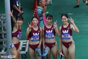 個人種目があれば走るかわかりませんでしたが、なくなったので予選から走ることになりました。今シーズン、全カレで表彰台というのを目標にしていて、まず予選を着順で突破して、決勝では優勝することができなくて悔しかったですが、自分たちの力を出し切った結果でした。早大記録もあと少しだったので、今回の全カレとしては悔いはありませんが、日本選手権リレーがあるのでそこで早大記録の更新を目標としたいです。