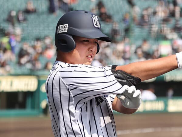 体格のよさ、構えのムードと好きなタイプの右打者です。私がロッテの監督時代は左打者が多く、ドラフト候補を見る時も右打者を求めていました。今も右の強打者は需要が高いはずです。彼の長所はトップを深くとれて、いい形でスイングできていること。下半身もしっかりしているので、変化球を引きつけてとらえられます。2ストライクに追い込まれてからはノーステップ打法にシフトして、スタイルを変える工夫をしているのもいいですね。今後を見越して課題を挙げるなら、重心が低いので構え遅れないようにしたいところ。プロでは速いクイックモーションの投手もいますし、いろんなバリエーションに対応できるようになると楽しみです。