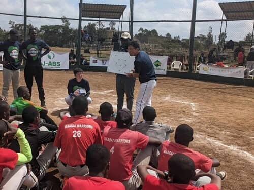 アフリカで野球を伝える友成氏(写真:J-ABS提供)