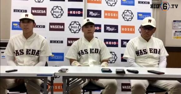 【ヒーローインタビュー】早稲田大学 小宮山悟監督・吉納翼(③東邦)・伊藤樹(②仙台育英) | 東京六大学野球