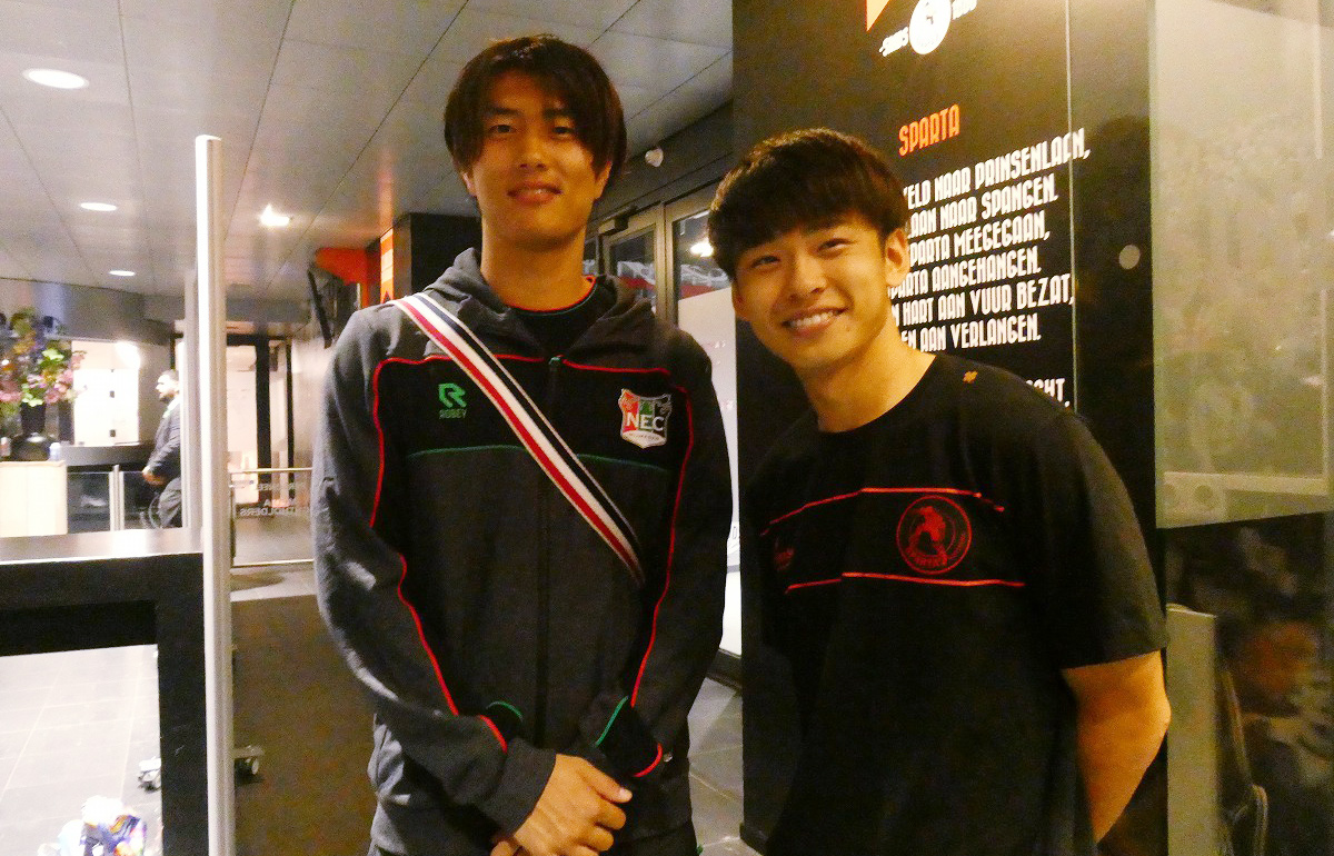 【写真】オランダで対決した斉藤光毅と小川航基の試合後2ショット