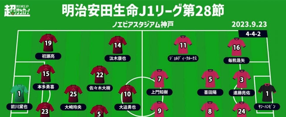 【明治安田生命J1リーグ第28節】 2023年9月23日(土) 19:00キックオフ ヴィッセル神戸(1位/52pt) …
