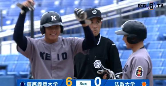 法大投手陣も中盤以降は立て直して失点を許さなかったが、打線の反撃は2点にとどまり、序盤で試合を決めた慶大が先勝した。