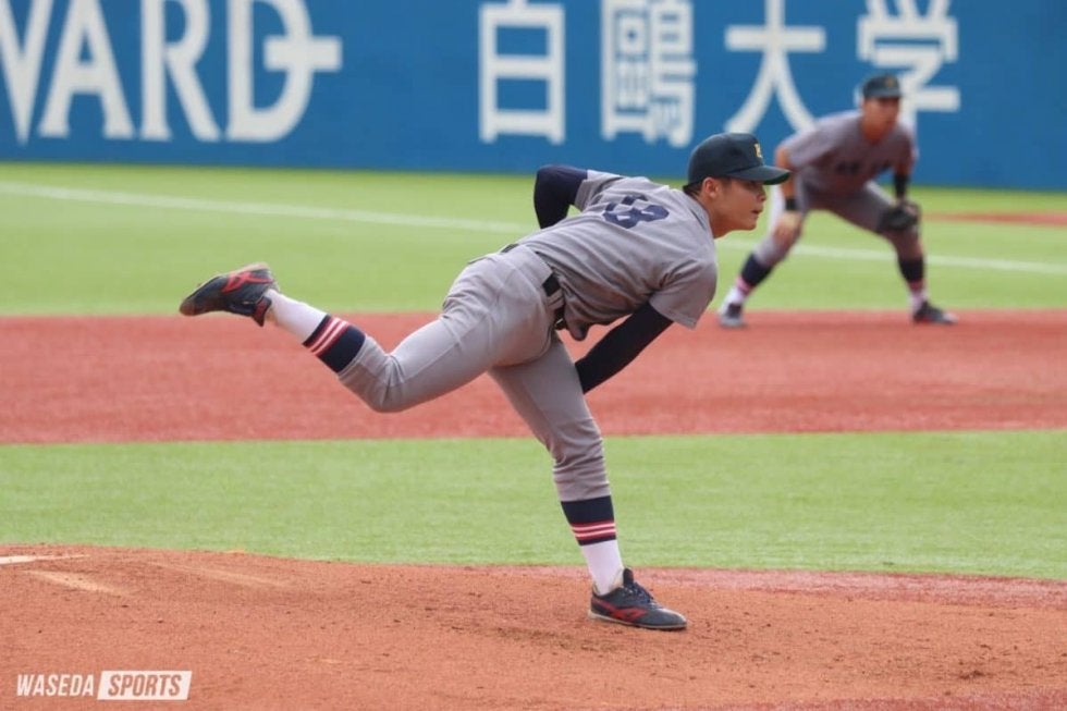 法大の投手が先発・篠木健太郎(3年)から武冨陸(4年)に代わっても勢いはとどまらない。3回は先発の外丸が自らを援護する適時打を放ち、3番・本間颯太朗(3年)もセンターへの適時打で続く。4回には一死二塁から7番・水鳥遥貴(3年)にも適時打が飛び出し、4回終了時点で8点のリードを奪う。