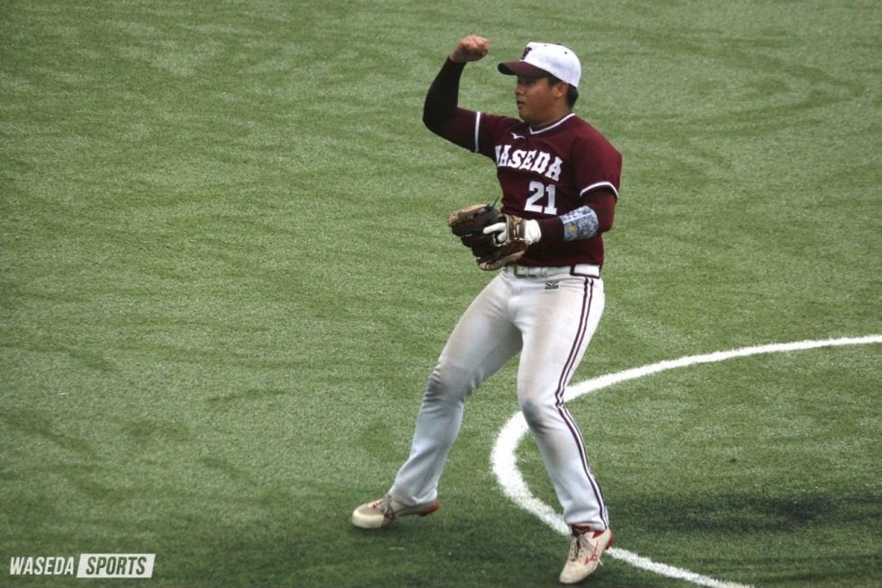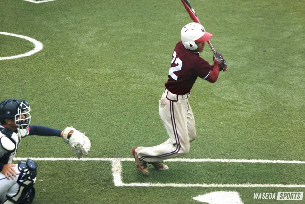 2点ビハインドで終盤に差し掛かると、早大は代打攻勢を仕掛ける。5回は2死一塁から代打の服部耕太郎(スポ3=東京・本郷)が四球を選び、チャンスを拡大する。一打逆転の場面で田中宏二(人3=大分舞鶴)が代打で登場するが、内野ゴロに打ち取られる。6回にも佐藤がフェンス直撃の二塁打を放ち好機を演出するが、走者がホームを踏むことはなかった。最終回は三者凡退に抑えられ試合終了。散発5安打が示すように、あと一本が出ず、スコアボードに0以外を並べることはできなかった。