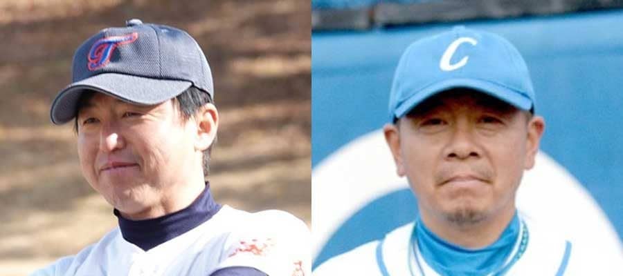 多賀少年野球クラブ・辻正人監督(左)と中条ブルーインパルス・倉知幸生監督【写真:橋本健吾、フィールドフォース提供】