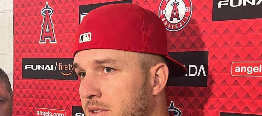 取材に応じたトラウト「彼次第だ。彼に聞けばいい。彼が決断することだ」■エンゼルス ー レンジャーズ(日本時間26日・アナ…
