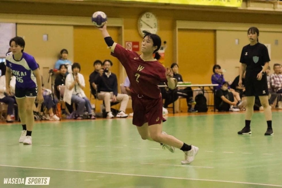 関東学生秋季リーグ(秋季リーグ)も残すところあと2戦となった。第8戦目は強豪・東海大と対戦した。前日に早大が敗戦した筑波大はフィジカルの強さでゲームを進めていくのに対し、東海大はスピードと高い技術力を武器とするチームだ。その点でプレースタイルが少し似ているチーム同士の一戦となった。前半はスピード感のある東海大に主導権を握られ、9-16と点差を離され前半を折り返す。追いつきたい後半は、好守から攻撃につなげ、点差を縮める。そしてラスト30秒のディフェンスで攻撃につなげると、山本桃虹(スポ3=東京・佼成学園女) がペナルティスローを獲得する。それを落ち着いて村上楓(スポ4=福岡・明光学園) が沈め、26-26で試合が終了した。