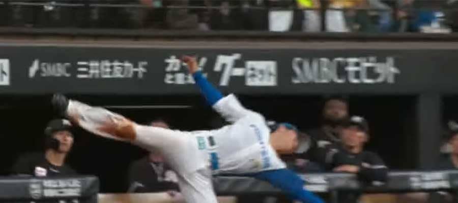 日本ハム・清宮幸太郎が26日のロッテ戦(エスコンフィールド)で見せた“珍守備”が話題になっている。三塁ベンチ近くに上がった飛球を追い、最後はフィールド側にエビ反った状態でキャッチ。「ジワる」「エビキャッチ」とファンから声が上がった。