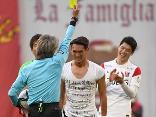 彼は特別賞で選ばないわけにはいかないです(笑)。私がプロレフェリーとして最後の試合が名古屋対浦和で、試合後に両チームの選手たちが花道を作ってくれまして。そこで彼がアンダーシャツにメッセージを書いて待っていてくれて「やられたな」と思いましたね(笑)。