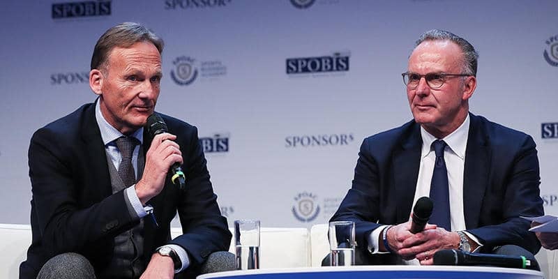 ドイツサッカー連盟(DFB)の副会長を務めるドルトムントの最高経営責任者(CEO)であるハンス=ヨアヒム・ヴァツケ氏とバ…
