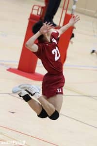 第3セットは、専大のブロックポイントが続き、序盤から5―10と引き離された。再び佐藤がコートに入り、強力なサーブを入れるも、なかなか点差は縮まらない。その後、水町のクロススパイクでブレイクして15-20とすると、流れが早大に傾く。水町のノータッチサービスエースを含む3連続ポイントで、21―23まで点差を縮めるも、逆転は叶わなかった。21-25でこのセットを献上。第4セットでは、水町のサービスエース、セッター前田凌吾(スポ2=大阪・清風)の1枚ブロックで会場を沸かせ、再び主導権を握る。セット後半では、アジア競技大会帰りの麻野堅斗(スポ1=京都・東山)が出場。麻野のクイックが決勝点となった。