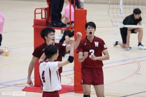 続くセットでは、前半は一進一退の攻防が続いたが、OP畑虎太郎(スポ2=福井・福井工業)のアタックやサービスエースから流れを引き寄せる。終盤は相次いで選手を入れ替えた。21-17の場面で水町に代わって安食浩士(スポ1=宮城・東北が)コートに入ると、高い打点からバックアタックを決めた。これまで攻撃を強みとしていた安食だが、サーブレシーブにも参加した。ディグリベロの布台駿(社4=東京・早実)が片手でスパイクを跳ね返してつなぎ、山田が決めきる。25-20でこのセットも奪った。