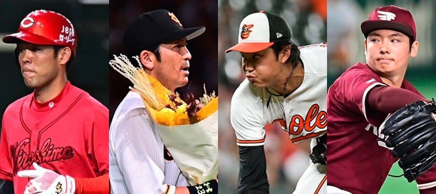 広島・秋山翔吾、巨人・松田宣浩、オリオールズ・藤浪晋太郎、楽天・松井裕樹(左から)【写真:中戸川知世、ロイター】