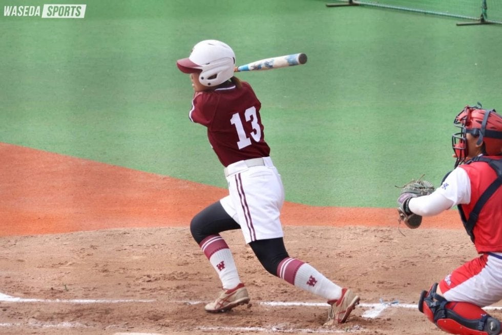 1試合目は東女体大と対戦した。初回、2番の瀧之上日向子(スポ1=埼玉・花咲徳栄)が左前安打で出塁。1死後、4番の関を打席に迎える。日体大戦から4番を任され、「この1週間は自分が打ってランナーを返すことが自分の役割だという気持ちで練習して」(関)きたと打球は左翼手の前に落ちる左前安打を放つ。さらに、この打球を相手左翼手がファンブル。その間に瀧之上が一塁から一気に本塁まで生還し、先制点をあげた。しかし、その後の攻撃は走者を出すも、盗塁死や併殺打でなかなか打線がつながらない。結果として7回までで1点のみの得点となった。