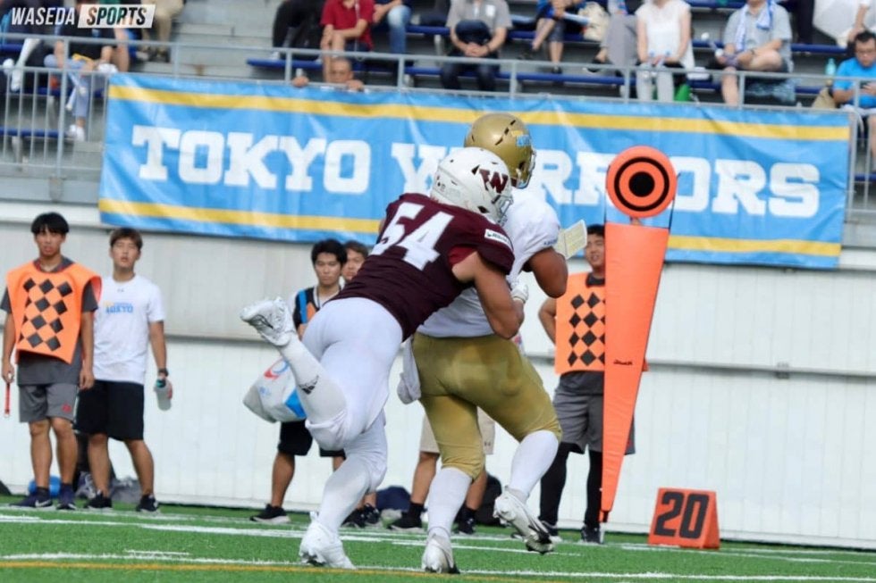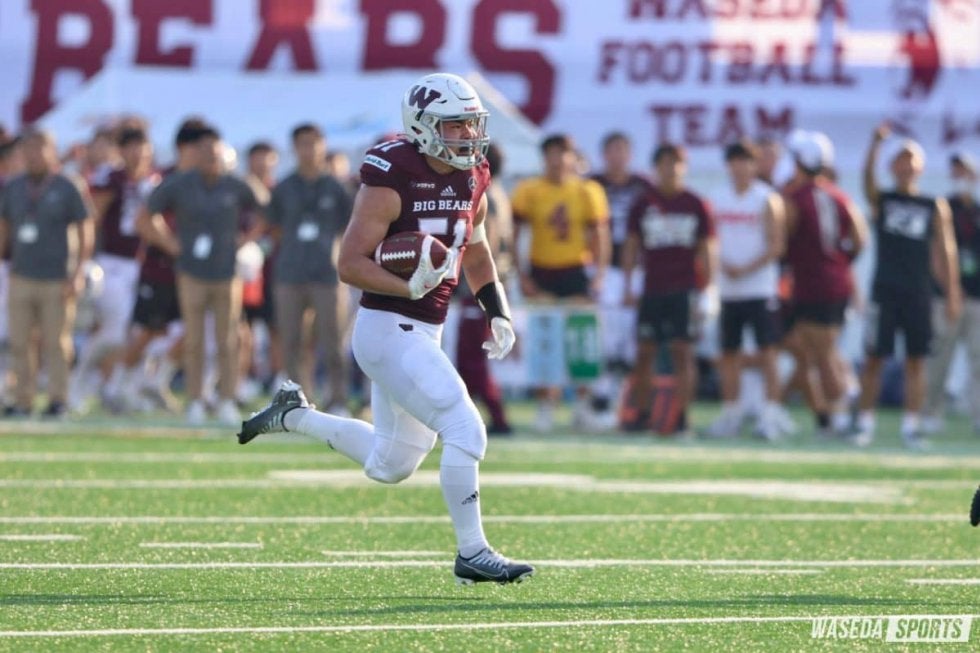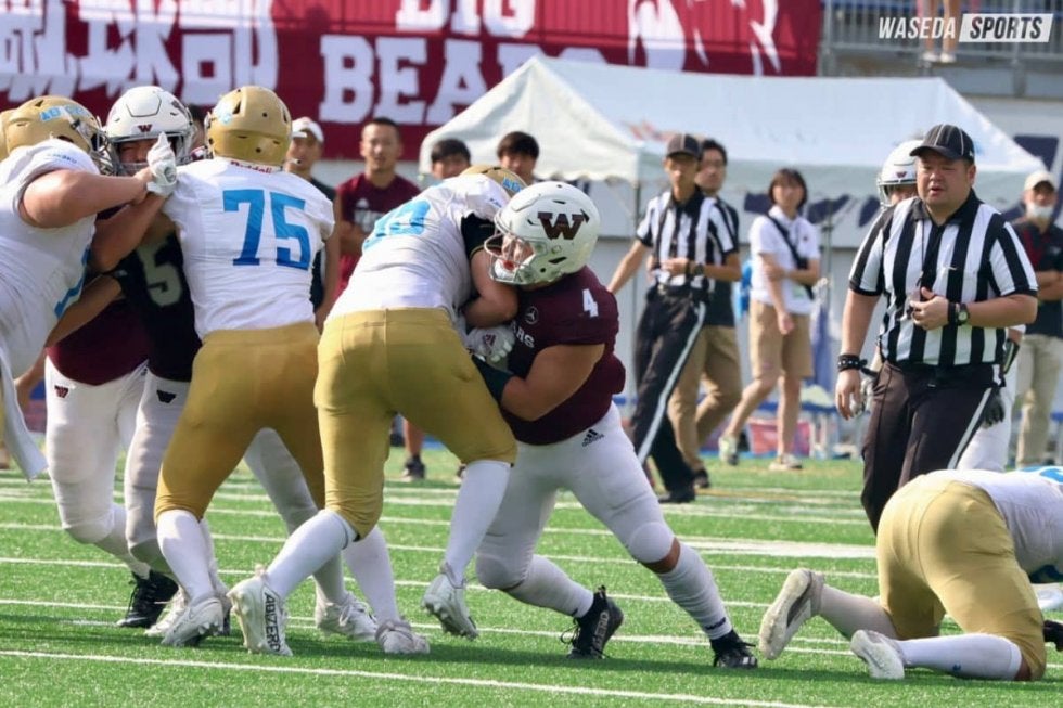 関東大学秋季リーグ戦の開幕戦で慶大に勝利した早大BIG BEARSは、約1カ月が空き、第2節に東大WARRIORSと対戦した。第1クォーター(Q)にFGで先制すると、第2Qでは3つのTDを成功し、得点を量産。後半も流れを渡さず、点を積み重ねて相手を突き放した。合計5回のTDを記録するなど、44点を獲得する。ディフェンスも東大のオフェンスを封じ込め、完封勝利。開幕2連勝を収めた。