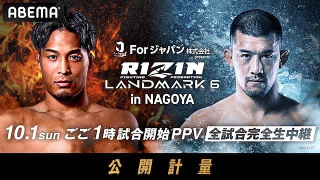◆『RIZIN LANDMARK 6』10月1日(日) ごご1時よりABEMAで全試合完全生中継!