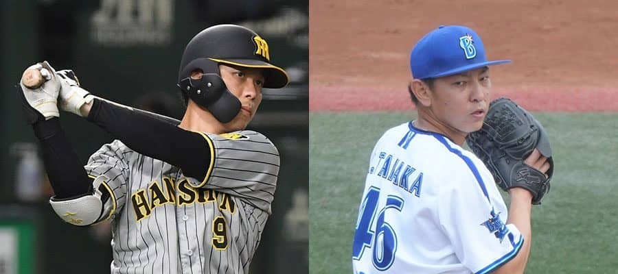 阪神・高山俊(左)とDeNA・田中健二朗【写真:荒川祐史、町田利衣】