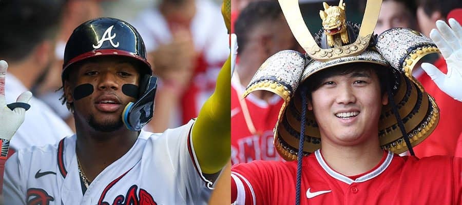 ブレーブスのロナルド・アクーニャJr.(左)とエンゼルス・大谷翔平【写真:ロイター】