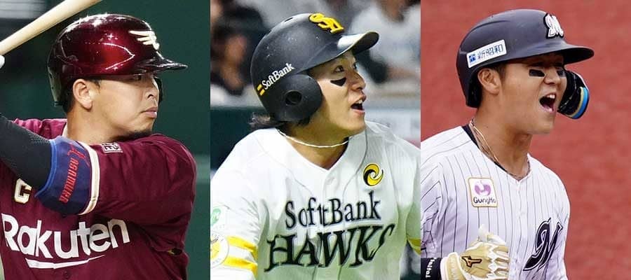 楽天・浅村栄斗、ソフトバンク・柳田悠岐、ロッテ・山口航輝【写真:荒川祐史、矢口亨】