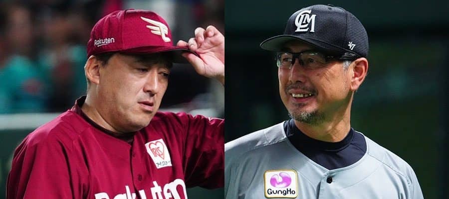 楽天・石井一久監督(左)とロッテ・吉井理人監督【写真:荒川祐史】