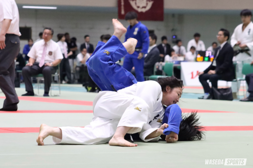 1日目には78キロ級で黒田亜紀主将(スポ4=山梨・富士学苑)、70キロ級で渡邉天海(スポ1=北海道・北海)と大森が出場。黒田は初戦の2回戦で相手の素早い大外刈などに辛抱するも、本戦4分の間に消極的姿勢など2つの指導を受ける。試合は両者ポイントが入らないまま、延長のGS(ゴールデンスコア)に突入。疲労もたまる中で寝技や大外刈を仕掛けにいった黒田だったが、GS1分4秒頃に3つ目の指導を受け、反則負けを喫した。渡邉は昨年の全日本ジュニア体重別選手権で3位に入った、帝京平成大の田嶋海佳(3年)と対戦。背負投などを仕掛けるも、両者ともにポイントはなく、延長戦となった。手技や足技の掛け合いが続くも、なかなかポイントが遠い展開となったこの一戦。しかし、試合開始から約7分半の場面、渡邉は相手の引き手によって重心を崩されると、そのまま大外刈を決められて一本負けを喫した。
