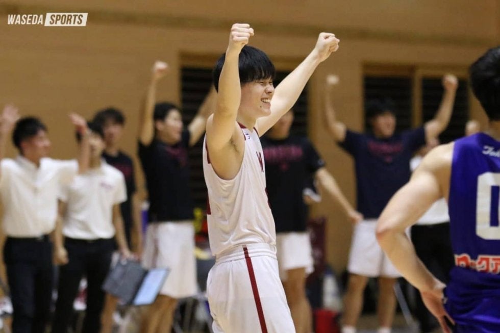 続く第3Qも早大が主導権を握ったままゲームが進んだ。試合を通してリバウンド数で勝った早大は、粘り強いディフェンスで東海大を抑え込むと、オフェンスリバウンドからも得点を重ね、さらに点差を離す。第3Q終了間際には三浦が3ポイントシュートを決め、63-53で最終第4Qへ。堀のバスケットカウントや、ルーズボールの取り合いを制した三浦のシュートで75-58、早大は17点にリードを広げた。しかし試合残り5分、東海大の猛攻が始まる。たまらず早大が取ったタイムアウト後、悪い流れを断ち切ったのは堀だった。堀のアシストやフリースローで得点を重ねる。さらにディフェンスに絡まれながらもタフシュートを決め切り、東海大の猛攻を抑え切った。東海大に追い上げられたピンチの状況でも、一人一人が焦らずプレーし、ターンオーバーにつながらなかったことも、勝ち切った要因だろう。強敵相手に待ち望んだ勝利を手にし、選手たちは歓喜の声を上げた。