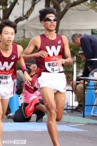 ハイペースも予想はしていました。ただ予想以上のハイペースに、集団が早くから小さくなってしまったので勝負のタイミングを逃さないように位置取りや前に出るタイミングを考えながら走っていました。3キロ過ぎの下り坂で集団後方から転倒した音が聞こえたので、巻き込まれないようにそのタイミングで集団の先頭に出て、篠原(倖太朗、駒大)や野村(昭夢、青学大)に対応しながら前方でレースを進めました。