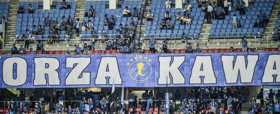 「おかえりワッキー!」の横断幕を掲げた川崎フロンターレのサポーター 撮影:中地拓也