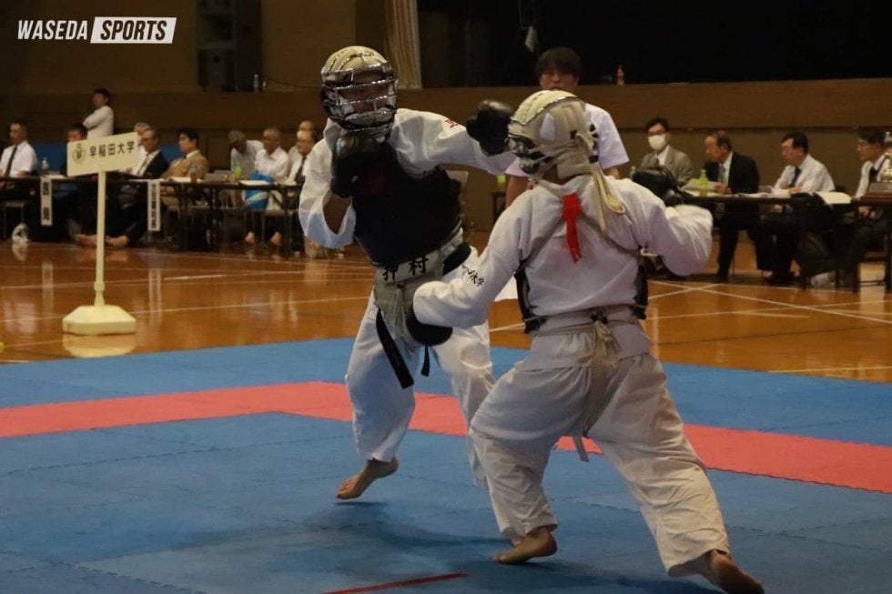 東日本大学選手権が開催された。男子は初戦で日大を圧倒するも、準決勝で中大に完敗を喫する。迎えた3位決定戦の相手は慶大。宿敵を5勝2敗で退け、3位入賞を果たす。西村世潤主将(文構4=大阪・桃山学院)は敢闘賞を受賞した。型の部では田中芳和(教1=山梨学院)が出場し、火流の型を披露。一方、女子は棄権となった。