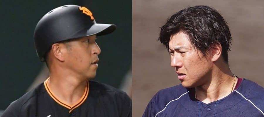 巨人・中島宏之(左)と楽天・炭谷銀仁朗【写真:小林靖、荒川祐史】