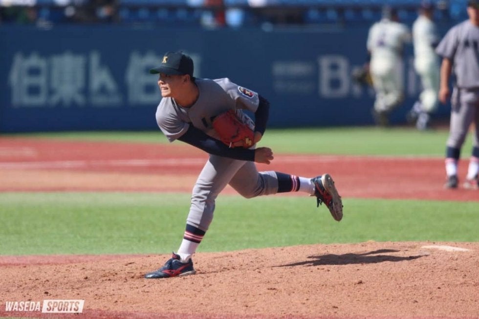 4点リードで迎えた7回。2死から代打の岸本一心(1年)に安打を許すと、続く代打・吉田匠吾(2年)に適時三塁打を浴び、1点を失った。しかし、ここでも外丸の切り替えの速さが光る。飯森を内野ゴロに抑え、1失点で切り抜けた。8回には榊原の内野安打により出塁を許すも、この場面で宗山塁(3年)を併殺に打ち取り、リードを保つ。そして、続く上田の右中間への大飛球を中堅手の吉川がダイビングキャッチ。これまで好投を続けてきた外丸を助けるプレーとなった。迎えた最終回、外丸は危なげなく3人で打ち取る。反撃を許さない見事な投球で強力な明大打線を封じ、5-2で勝利を決めた。