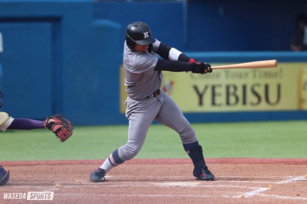 慶大は初回、先頭の吉川海斗(4年)が内野安打で出塁。廣瀬隆太(4年)が安打で続き、本間颯太朗(3年)の犠打で1死二、三塁と好機をつくる。続く栗林泰三(4年)が左中間へ適時二塁打を放ち、2点の先制に成功した。その後も、慶大打線の勢いは止まらない。5番・宮崎恭輔(4年)の中前打、6番・齋藤來音(4年)の四球により再び1死満塁の好機となる。ここで、7番・水鳥遥貴(3年)に左中間を破る適時二塁打が飛び出し、3点を追加。初回から打者一巡の猛攻となり、試合の流れをつかんだ。