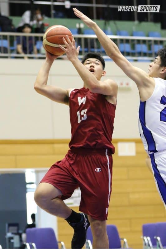 F三浦健一(スポ1=京都・洛南)の連続得点で良い滑り出しを見せた第1Qだったが、神大に3点シュートを決められ、すぐに逆転された。しかし、F星川堅信(スポ4=京都・洛南)が3点シュートを決め返すと、三浦もリング下のシュートを決めて再び早大が逆転した。第1Qは拮抗(きっこう)する展開が続いたが、終盤に神大が速攻から立て続けに得点を決め、早大は4点ビハインドを背負った。しかし第2Qには開始直後に三浦が激しい守備から神大のミスを誘うと、そこから早大が連続得点。第1Q終盤の流れをすぐに奪い返した。そこからは早大が速い展開でテンポよく攻撃を重ねていく。F堀陽稀(スポ2=京都・東山)のリバウンドも光り、第2Qは43ー36で早大がリードして終えた。