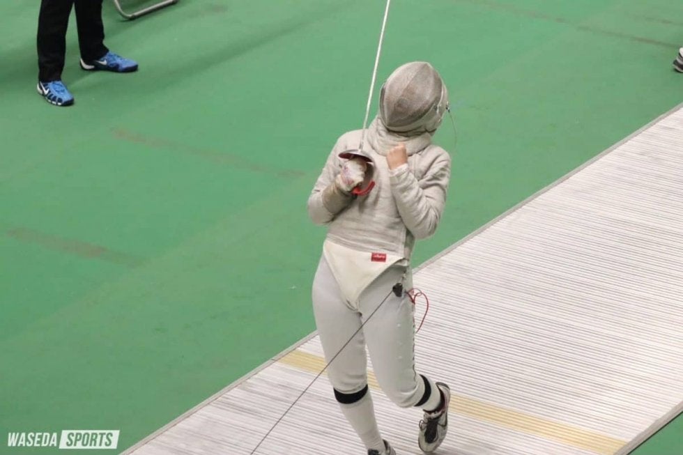 個人戦には山崎と伊藤花乃(スポ1=愛知・三島)の1年生コンビが挑んだ。2人とも予選からの出場だったが、山崎が4戦全勝、伊藤が3勝1敗と好成績で決勝トーナメントへと進出する。ベスト4を目標にしていたという山崎は初戦を15―3で危なげなく勝ち上がると、続く試合では15―14と接戦をものにした。そして直前の反省点を踏まえて臨んだという準々決勝。この試合に勝てば目標であるベスト4に届くところだったが、「(点を)取り急いでしまった」と6―15で敗れ、初めての関カレは悔いの残る結果となった。インカレでもベスト4を目指すという山崎は、悔しさをバネにさらなる飛躍を遂げられるか。一方、伊藤は決勝トーナメント1回戦で9―15で敗れた。初出場で得たこの経験を糧にして、来年同じ舞台で成長した姿を見せたい。