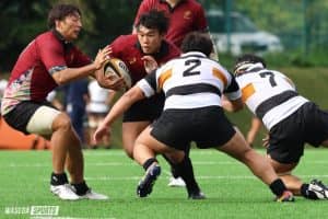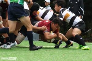 時折小雨がちらつく曇り空の下、慶大日吉グラウンドで関東大学ジュニア選手権の3回戦が行われた。早大Bは前半開始直後に先制に成功。その後1トライを返されるものの、粘り強く耐え続け得点を許さない。着実に得点を重ねて22―5で試合を折り返した。後半最初に不運な形から失点し、慶大Bに流れが傾きかけるが、自分たちの形を崩さなかった早大B。終盤に追加点を重ね突き放すと、36ー19で今大会初勝利を挙げた。