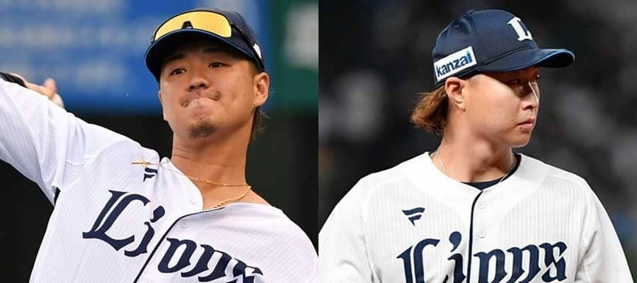西武・佐藤龍世(左)と山村崇嘉【写真:小林靖】