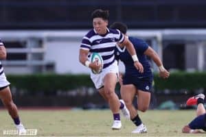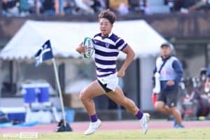 後半開始早々、木戸のビックゲインで好機をつかむが、ノックオンで得点には結びつかない。後半最初のトライは敵陣10メートルライン右でのラインアウトから。明大が左に素早くパスを展開すると、安田が大外で受けてそのまま走り込み、タックルを受けながらも力強くインゴールへ倒れ込んだ。12分にモールトライ、15分にも秋濱のディフェンスのギャップをついたキックから速攻し、またも安田がトライ。22分に明大のノックオンから立大へ初トライを献上したものの、集中力は途切れなかった。直後の25分には、立大がキックで作ろうとした好機を明大が奪う。SO伊藤耕太郎がこぼれたボールを拾ってスピードに乗ると、そのまま自らインゴール右へ駆け抜けた。最後まで立大を寄せ付けなかった明大。ここからさらに4トライを追加し、97ー7の大差で勝利を収めた。