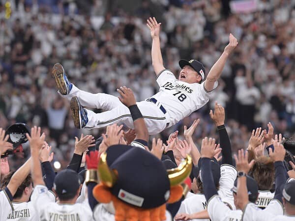 圧倒的な強さでリーグ3連覇を達成し、胴上げされるオリックス・中嶋聡監督