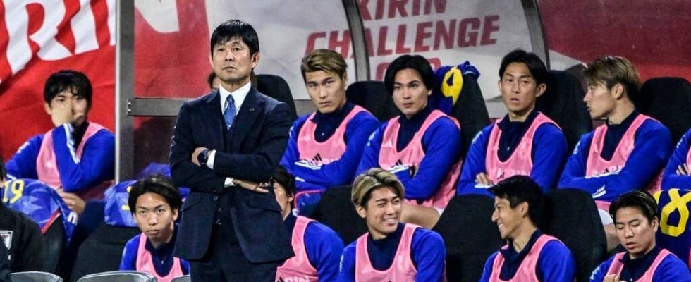 チュニジア戦で指揮を執るサッカー日本代表の森保一監督 撮影:中地拓也