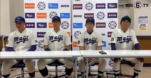 【ヒーローインタビュー】明治大学田中武宏監督・蒔田稔(④九州学院)・村田賢一(④春日部共栄) ・上田希由翔(④愛産大三河…
