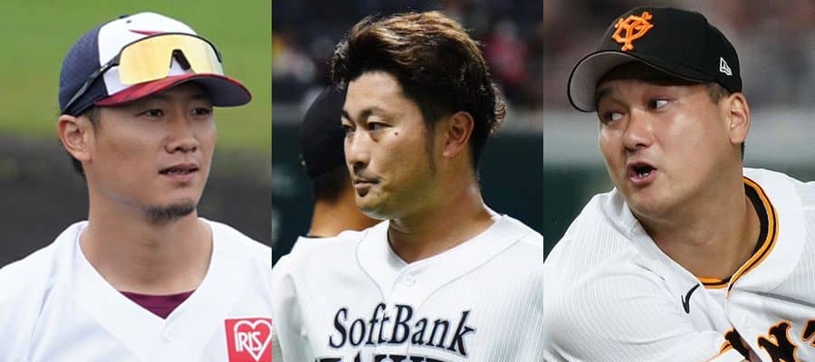 戦力外通告を受けた楽天・西川遥輝、ソフトバンク・森唯斗、巨人・三上朋也(左から)【写真:荒川祐史、矢口亨】