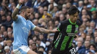 ウォーカーとのマッチアップでも異彩を放った三笘。そのプレーに対する評価はうなぎ上りだ。(C)Getty Images「最…