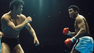 リング上でヒリヒリとしたにらみ合いを見せた猪木とアリ。この両雄の対戦はいまだ色褪せない。(C)Getty Images …