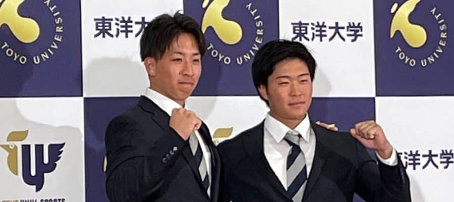 東洋大の最速158キロ左腕・細野晴希投手は、26日に行われた「プロ野球ドラフト会議 supported by リポビタンD」で日本ハムから1位指名を受けた。1度目も2度目も入札がなく、“3度目の正直”での指名。都内の東洋大キャンパスで会見に臨んだ細野は、「細野の“ほ”の音が早く流れてくれないかなと思った」と、悔しさともどかしさの中で待ち続けた胸中を語った。