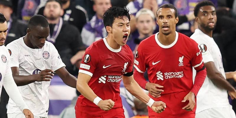 遠藤航が豪快ヘディング弾で加入後初ゴール! 今季最多5ゴールのリバプールがGS3連勝【EL】