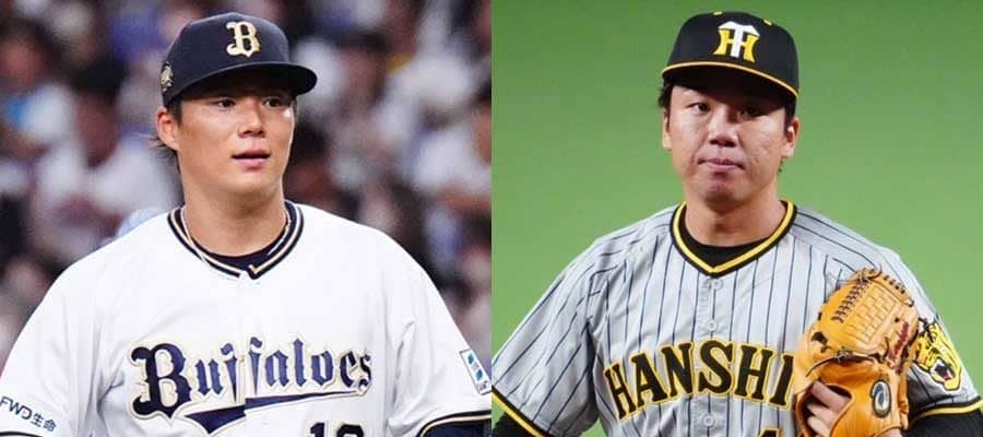 オリックス・山本由伸(左)と阪神・村上頌樹【写真:荒川祐史】