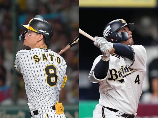 日本シリーズでの活躍が注目される阪神の 佐藤輝明(左)とオリックスの森友哉