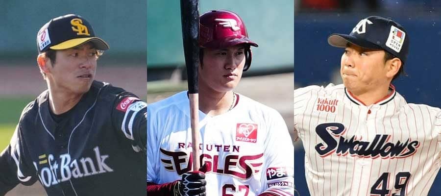 ソフトバンク・古川侑利、楽天・正隨優弥、ヤクルト・成田翔(左から)【写真:荒川祐史、小林靖】